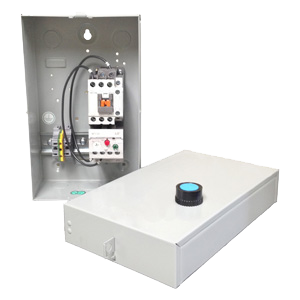 | Model | Coil Voltage | HP | Overload Current Setting | FL Amps (A) | Auxiliary Contacts | Dimensions (in.) | Box Size |
