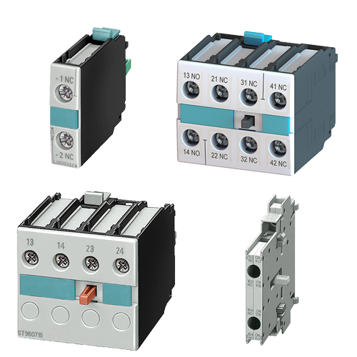 • The 3RH19 auxiliary contact blocks are available in: 1, 2, 3, 4-pole front mount versions and 2-pole Side Mount versions