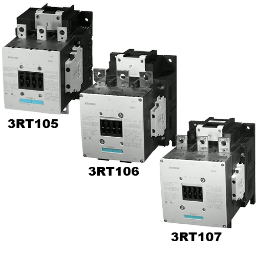 • Front and side mounted auxiliary contacts from sizes 3RT102 through 3RT107